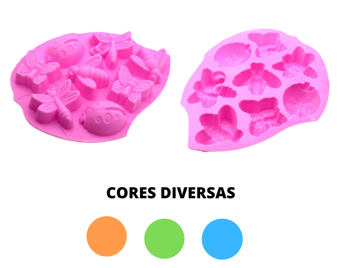Forma em silicone, com formato de borboleta, libélula e joaninha.